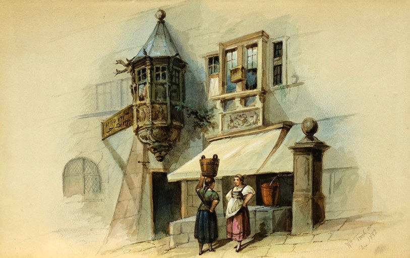Wilhelm Trost Xylograph, Maler, Kunsthändler 1813-1901 in Nürnberg. Sohn des Johann Michael. Schüler der Nürnberger Kunstschule. Er malte Portraits, Landschaften und Stillleben und beschäftigte sich mit Photographie. Erfinder der Rauchmalerei. Als Xylograph fertigte er Illustrationen und Schmuck für Bücher und Zeitschriften. 1855 präsentierte er Arbeiten auf der Weltausstellung in New York. Um 1850/51 erwarb er das Haus Pfeifergasse 3, in dem er Kunst-, Galanterie- und Schreibwaren vertrieb, hier war er auch 1900 ansässig. Mitglied des Künstlervereins. MuS: Nürnberg, MStN, Lit: Thieme Becker, Stadtlexikon 2000. Austst.: 1830/1,1838/1,1877/1,1891/1 (Auszug aus dem Nürnberger Künstlerlexikon von Manfred Grieb)