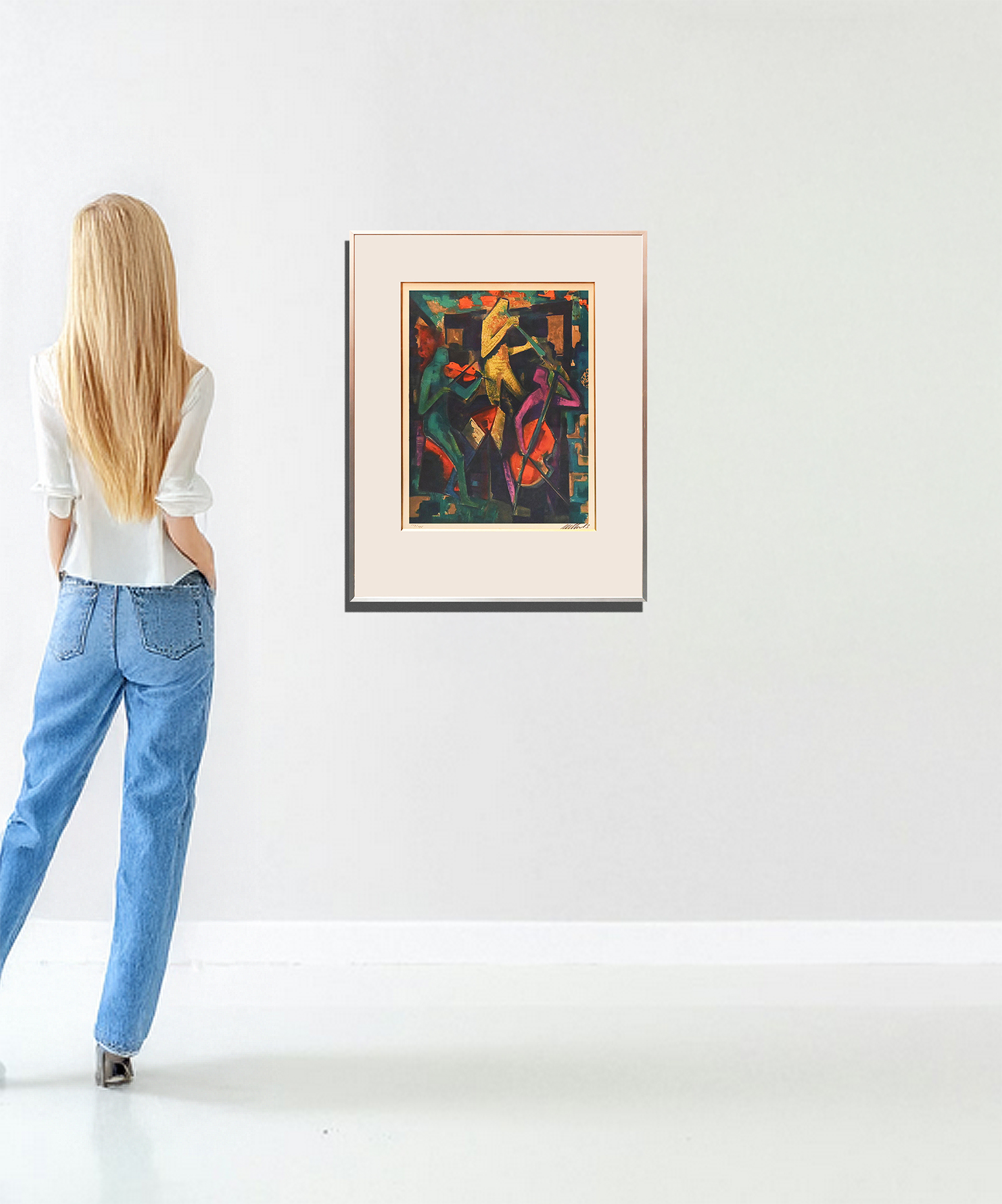 Foto Hinweis: Der Hintergrund des Fotos, in dem das Gemälde an der Wand präsentiert wird, ist teilweise mithilfe von KI gestaltet.