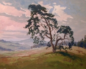 Kurt Mayer-Pfalz (30.4. 1911 Nürnberg - nach 2002) Bühnenbildner und Landschaftsmaler. Studium an der Akademie für angewandte Kunst in München bei Prof. Pretorius. Mayer-Pfalz arbeitete an der Stuttgarter Volksbühne, später im Nürnberger Schauspielhaus, wo er den Bühnenbildner Heinz Grete kennen lernte, der ihn in die Kunst der Bühnengestaltung einführte. Später übernahm K. Mayer-Pfalz dessen Aufgaben als Nachfolger und war auch 15 Jahre für die Gestaltung der Bühnen im Opernhaus Nürnberg verantwortlich. Zwischenzeitlich war er in Bad Segeberg mit der Kulissengestaltung der Karl-May Festspiele beauftragt, hierfür hatte er vorab ein riesiges Modell angefertigt. Auch bei den Hessfelder Festspielen 1950 waren seine Bühnenentwürfe gefragt. Sein weiterer Berufsweg führte Ihn nach Erlangen, wo er für die Firma Siemens im graphischen Bereich tätig war. K. Mayer-Pfalz war meist mit dem Fahrrad unterwegs, als Freilichtmaler tätig entstanden seine Landschaftsgemälde ausschließlich vor Ort. Seine Malerfahrten führten ihn meist in die Fränkische Schweiz. Die Blattgröße seiner Tempera-Gemälde (40 x 31cm) ergab sich aus der Tatsache, dass diese Blätter genau in den Malkasten passten, der sich fast immer auf dem Fahrradträger befand. Eine geplante Ausstellung in der Nürnberger Kunsthalle am Marientor kam nicht zustande, da der Künstler kurz vorher zur Wehrmacht eingezogen wurde. K. Mayer-Pfalz lebte 2002 noch in Erlangen.