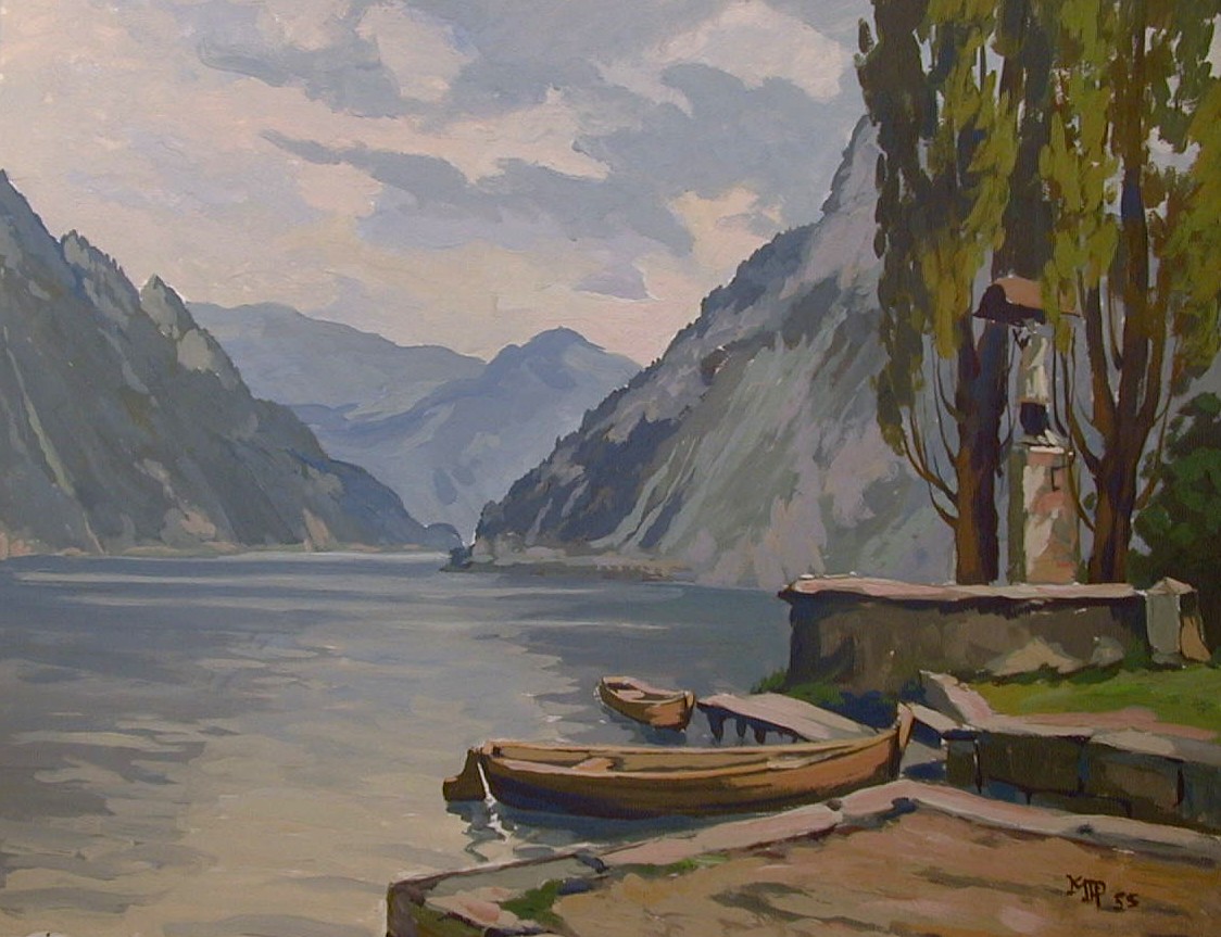 Kurt Mayer-Pfalz (30.4. 1911 Nürnberg - nach 2002) Bühnenbildner und Landschaftsmaler. Studium an der Akademie für angewandte Kunst in München bei Prof. Pretorius. Mayer-Pfalz arbeitete an der Stuttgarter Volksbühne, später im Nürnberger Schauspielhaus, wo er den Bühnenbildner Heinz Grete kennen lernte, der ihn in die Kunst der Bühnengestaltung einführte. Später übernahm K. Mayer-Pfalz dessen Aufgaben als Nachfolger und war auch 15 Jahre für die Gestaltung der Bühnen im Opernhaus Nürnberg verantwortlich. Zwischenzeitlich war er in Bad Segeberg mit der Kulissengestaltung der Karl-May Festspiele beauftragt, hierfür hatte er vorab ein riesiges Modell angefertigt. Auch bei den Hessfelder Festspielen 1950 waren seine Bühnenentwürfe gefragt. Sein weiterer Berufsweg führte Ihn nach Erlangen, wo er für die Firma Siemens im graphischen Bereich tätig war. K. Mayer-Pfalz war meist mit dem Fahrrad unterwegs, als Freilichtmaler tätig entstanden seine Landschaftsgemälde ausschließlich vor Ort. Seine Malerfahrten führten ihn meist in die Fränkische Schweiz. Die Blattgröße seiner Tempera-Gemälde (40 x 31cm) ergab sich aus der Tatsache, dass diese Blätter genau in den Malkasten passten, der sich fast immer auf dem Fahrradträger befand. Eine geplante Ausstellung in der Nürnberger Kunsthalle am Marientor kam nicht zustande, da der Künstler kurz vorher zur Wehrmacht eingezogen wurde. K. Mayer-Pfalz lebte 2002 noch in Erlangen.