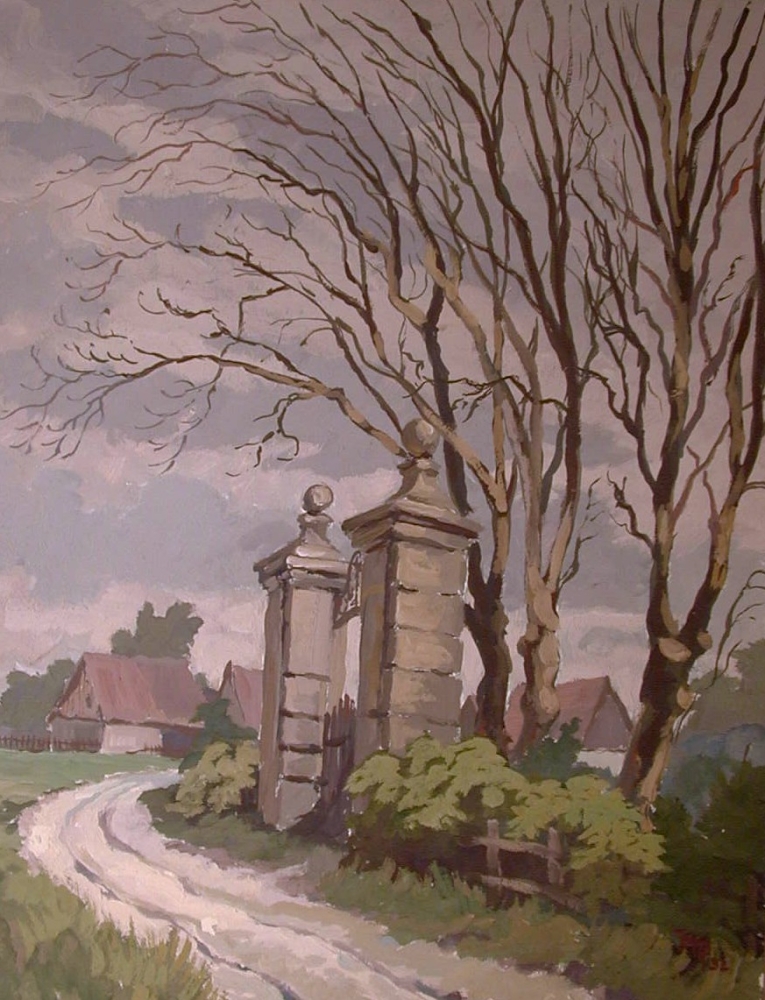 Kurt Mayer-Pfalz (30.4. 1911 Nürnberg - nach 2002) Bühnenbildner und Landschaftsmaler. Studium an der Akademie für angewandte Kunst in München bei Prof. Pretorius. Mayer-Pfalz arbeitete an der Stuttgarter Volksbühne, später im Nürnberger Schauspielhaus, wo er den Bühnenbildner Heinz Grete kennen lernte, der ihn in die Kunst der Bühnengestaltung einführte. Später übernahm K. Mayer-Pfalz dessen Aufgaben als Nachfolger und war auch 15 Jahre für die Gestaltung der Bühnen im Opernhaus Nürnberg verantwortlich. Zwischenzeitlich war er in Bad Segeberg mit der Kulissengestaltung der Karl-May Festspiele beauftragt, hierfür hatte er vorab ein riesiges Modell angefertigt. Auch bei den Hessfelder Festspielen 1950 waren seine Bühnenentwürfe gefragt. Sein weiterer Berufsweg führte Ihn nach Erlangen, wo er für die Firma Siemens im graphischen Bereich tätig war. K. Mayer-Pfalz war meist mit dem Fahrrad unterwegs, als Freilichtmaler tätig entstanden seine Landschaftsgemälde ausschließlich vor Ort. Seine Malerfahrten führten ihn meist in die Fränkische Schweiz. Die Blattgröße seiner Tempera-Gemälde (40 x 31cm) ergab sich aus der Tatsache, dass diese Blätter genau in den Malkasten passten, der sich fast immer auf dem Fahrradträger befand. Eine geplante Ausstellung in der Nürnberger Kunsthalle am Marientor kam nicht zustande, da der Künstler kurz vorher zur Wehrmacht eingezogen wurde. K. Mayer-Pfalz lebte 2002 noch in Erlangen.