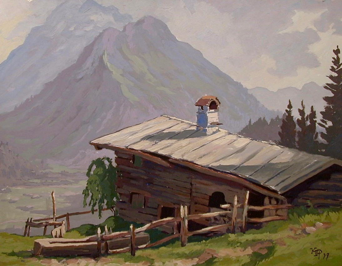 Kurt Mayer-Pfalz (30.4. 1911 Nürnberg - nach 2002) Bühnenbildner und Landschaftsmaler. Studium an der Akademie für angewandte Kunst in München bei Prof. Pretorius. Mayer-Pfalz arbeitete an der Stuttgarter Volksbühne, später im Nürnberger Schauspielhaus, wo er den Bühnenbildner Heinz Grete kennen lernte, der ihn in die Kunst der Bühnengestaltung einführte. Später übernahm K. Mayer-Pfalz dessen Aufgaben als Nachfolger und war auch 15 Jahre für die Gestaltung der Bühnen im Opernhaus Nürnberg verantwortlich. Zwischenzeitlich war er in Bad Segeberg mit der Kulissengestaltung der Karl-May Festspiele beauftragt, hierfür hatte er vorab ein riesiges Modell angefertigt. Auch bei den Hessfelder Festspielen 1950 waren seine Bühnenentwürfe gefragt. Sein weiterer Berufsweg führte Ihn nach Erlangen, wo er für die Firma Siemens im graphischen Bereich tätig war. K. Mayer-Pfalz war meist mit dem Fahrrad unterwegs, als Freilichtmaler tätig entstanden seine Landschaftsgemälde ausschließlich vor Ort. Seine Malerfahrten führten ihn meist in die Fränkische Schweiz. Die Blattgröße seiner Tempera-Gemälde (40 x 31cm) ergab sich aus der Tatsache, dass diese Blätter genau in den Malkasten passten, der sich fast immer auf dem Fahrradträger befand. Eine geplante Ausstellung in der Nürnberger Kunsthalle am Marientor kam nicht zustande, da der Künstler kurz vorher zur Wehrmacht eingezogen wurde. K. Mayer-Pfalz lebte 2002 noch in Erlangen.