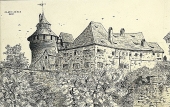 Karl Seubert, Knoblauchsland mit Blick auf eine Dorfkirche, evtl. St Peter und Paul Kirche in Poppenreuth