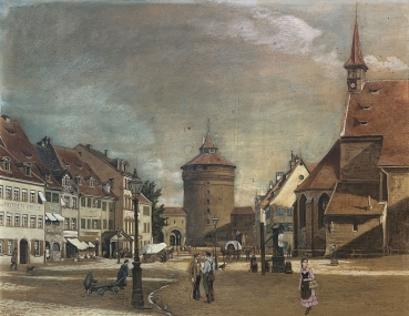 Samuel Prout, Nürnbergansicht mit Brunnen