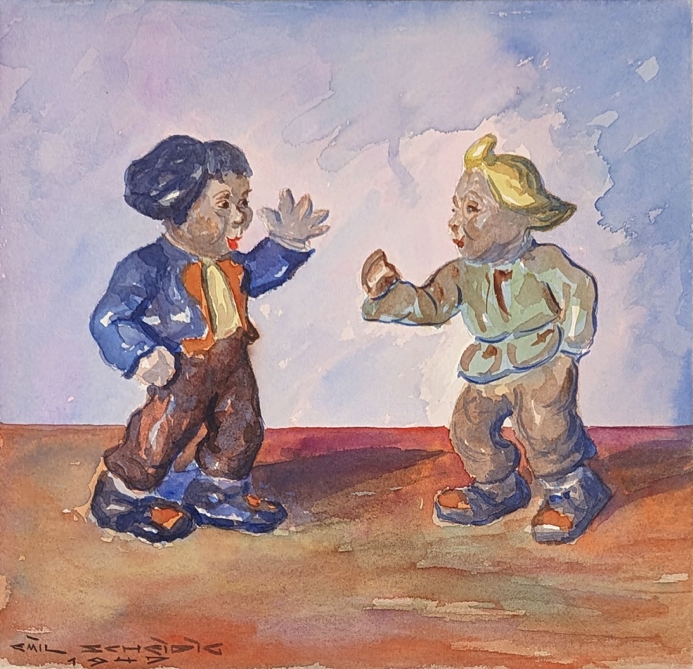 Emil Scheidig Erinnerung an Wilhelm Busch (1947) Aquarell Maße: 26 x 25,5 cm Maße mit Passepartout: 45 x 55 cm Unten links signiert