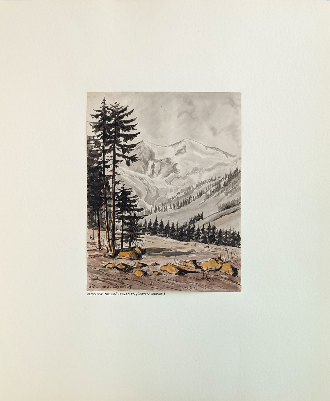 Emil Scheidig Fuschertal bei Ferleiten (Hohe Tauern) Aquarell Maße: 21 x 27 cm Maße mit Passepartout: 45 x 55 cm Unten links signiert